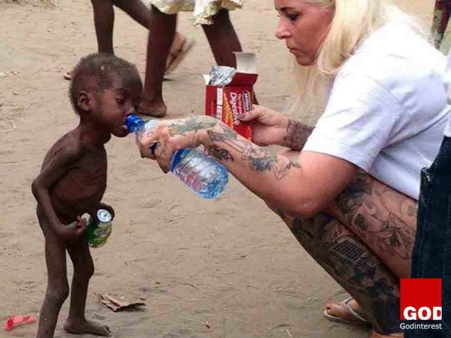 Godinterest reveals the story behind the heartbreaking image shared on social media almost one year ago of an aid worker photographed giving water to a severely emaciated child.