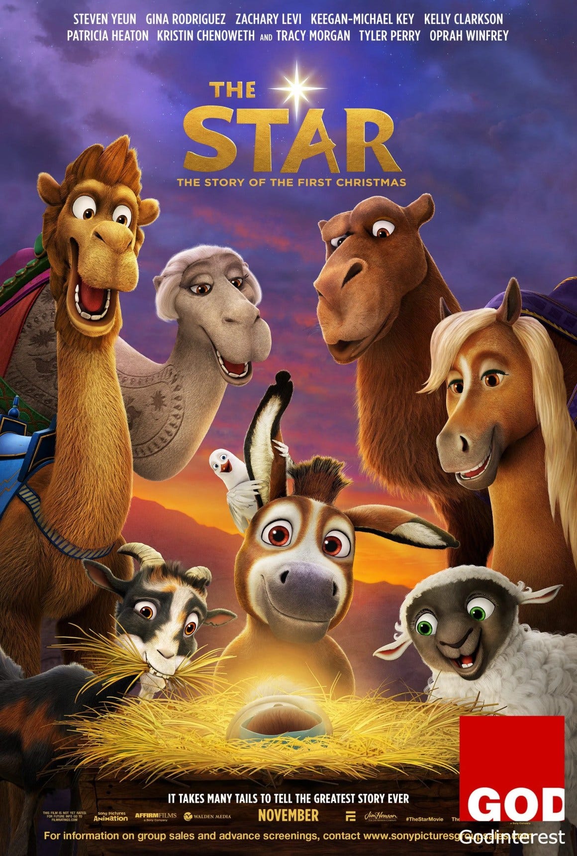 In Sony Pictures Animation’s THE STAR, a small but brave donkey named Bo yearns for a life beyond his daily grind at the village mill. One day he finds the courage to break free, and finally goes on the adventure of his dreams. On his journey, he teams up with Ruth, a loveable sheep who has lost her flock, and Dave, a dove with lofty aspirations. Along with three wisecracking camels and some eccentric stable animals, Bo and his new friends follow the Star and become unlikely heroes in the greatest story ever told – the first Christmas.